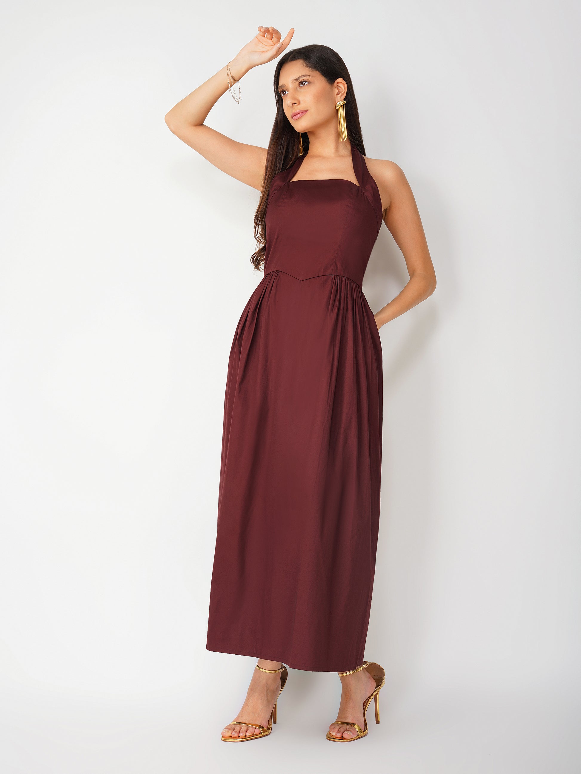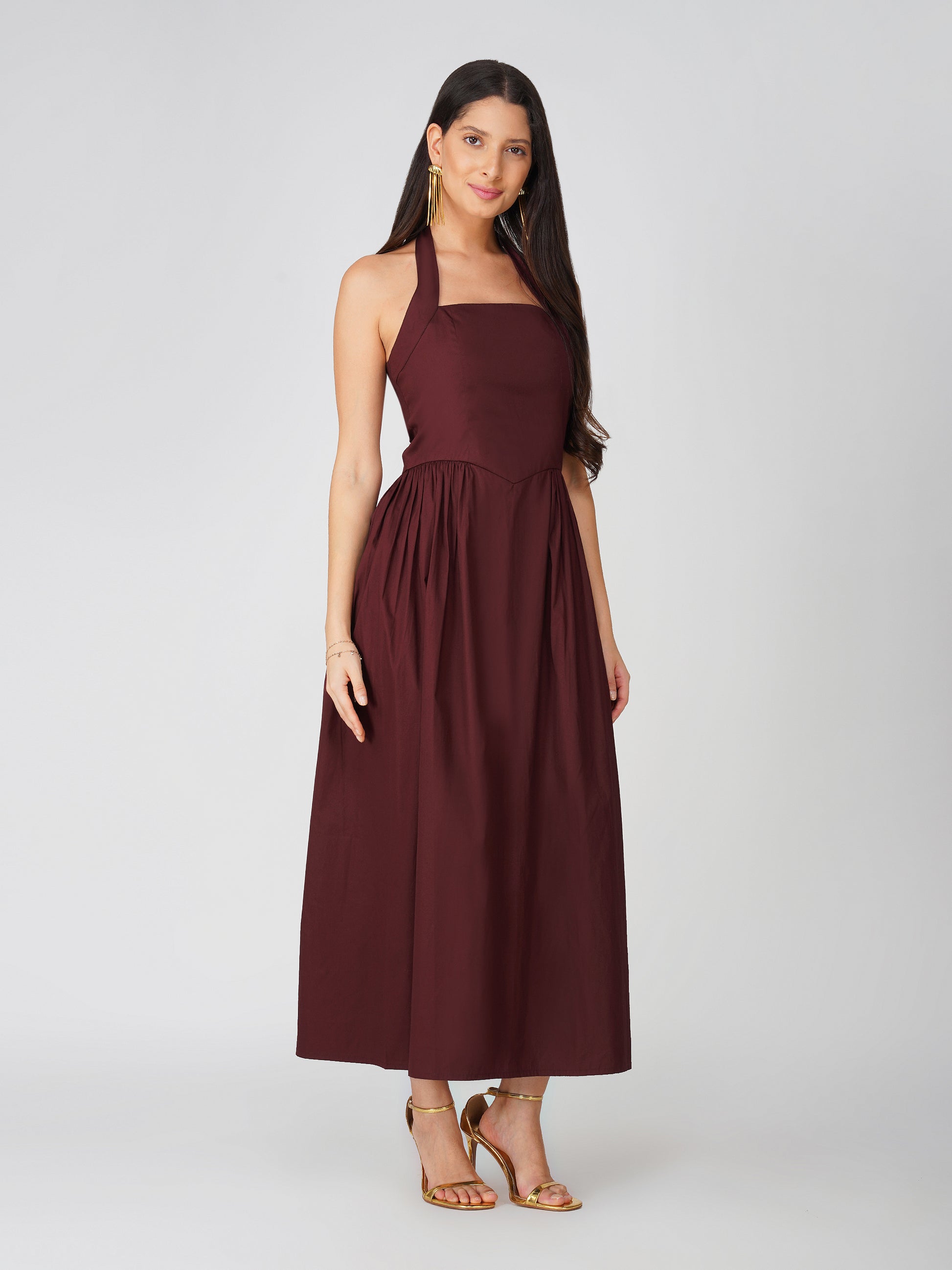 Brown Halter Neck Dress